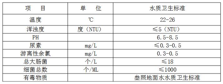 隨著人們生活水平的提高,游泳館已成為人們經(jīng)常光顧的娛樂(lè)、休閑、體育鍛煉的重要場(chǎng)所之一,為保證人工游泳池的水質(zhì)標(biāo)準(zhǔn),我國(guó)目前已頒發(fā)了《游泳場(chǎng)所衛(wèi)生標(biāo)準(zhǔn)》和《游泳池給水排水設(shè)計(jì)規(guī)范》兩個(gè)法規(guī),其中對(duì)人工游泳池的水質(zhì)標(biāo)準(zhǔn)規(guī)定如下: