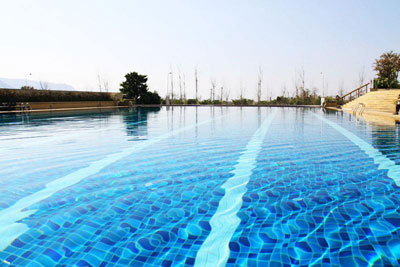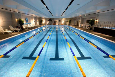 游泳池是人們從事游泳運動的場地,人們可以在里面活動或進(jìn)行比賽。多數(shù)游泳池建在地面,根據(jù)水溫可分為一般游泳池和溫水游泳池。游泳池游泳運動專門場所。分室內(nèi)、室外兩種。正式比賽用池為長50米、寬至少21米、水深1.8米以上;供游泳、跳水和水球綜合使用的池,水深1.3~3.5米;設(shè)10米跳臺的池,水深應(yīng)為5米。游泳池水溫應(yīng)保持在27~28°c。應(yīng)有過濾和消毒設(shè)備,以保持池水清潔。