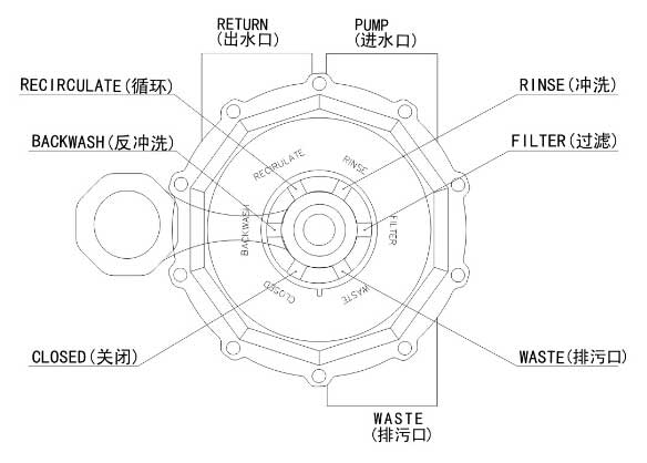 了解更多+正常過濾:多向閥調(diào)至(FILTER),打開主進水蝶閥、循環(huán)水泵前后閥門及各出水閥門,啟動循環(huán)泵,過濾進行。