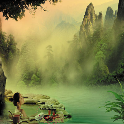 腳先入池坐在池邊,深處雙腳慢慢浸泡,然后用手不停地將溫泉水潑淋全身,最后時(shí)不時(shí)讓全身浸入到泉水中。