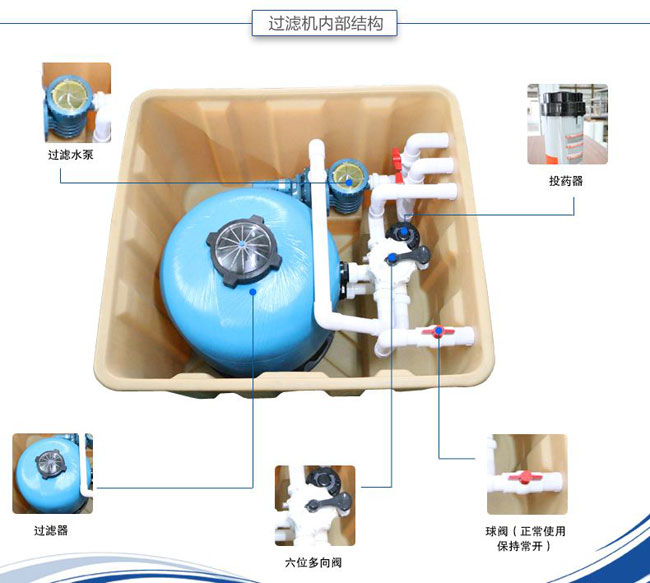 機(jī)箱外殼精選一級聚氯乙烯原料,一次注塑成型,外形小巧,工藝優(yōu)良,人性化設(shè)計,集過濾、扶梯、水下燈光于一身,并可配置11kw恒溫加熱器,特別適合于別墅泳池,一年四季均可享受游泳的樂趣。