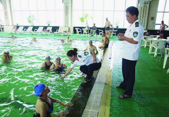 水質(zhì)衛(wèi)生的現(xiàn)場常規(guī)檢測由游泳池場館自身檢測,開放時間應(yīng)每隔2小時檢測一次,各游泳場館應(yīng)配備專門的水質(zhì)管理員。