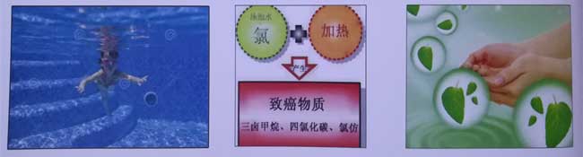 把水中的氯離子和化學(xué)反應(yīng)產(chǎn)生的三鹵甲烷帶人空氣中,污染空氣引發(fā)疾病。