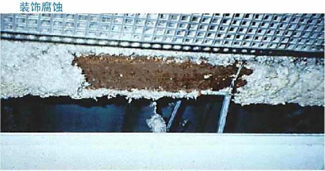 室內(nèi)游泳池由于池水表面蒸發(fā)容易使室內(nèi)充滿潮濕含氯的空氣,當(dāng)潮濕含氯的空氣遇到較冷物體就會(huì)凝結(jié)出冷凝水,由于冷凝水含有大量的氯,將會(huì)腐蝕所接觸到的建筑物,如使裝修面層生銹、起鼓、掉漆等,嚴(yán)重的時(shí)候回因腐蝕到受力鋼筋,使之抗拉強(qiáng)度降低而斷裂,造成房屋垮塌等危險(xiǎn)。這情況在發(fā)達(dá)國家增發(fā)生過多次。