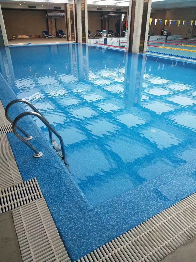 1、水質平衡:當池水在水質平衡指數(shù)低于-0.3以下式,因為池水的總硬度低于200ppm,池水對鈣離子充滿饑餓感,以致于溶解瓷磚縫中的水泥,來補充鈣離子濃度,以達到水質平衡,因此,瓷磚縫會下沉,導致瓷磚相對浮出,泳者因腳趾踢到瓷磚角而受傷。
