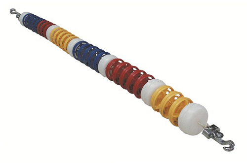 本泳道線適合各種一般的比賽或訓練,一般由白色圓形浮子將紅色,藍色,黃色的風車型的浮子間隔排列。即美觀,又顯眼。浮子的材質是由高密度低壓聚乙烯制成,質量保證,風扇葉狀的浮子助于消波,具有很好的防浪效果。