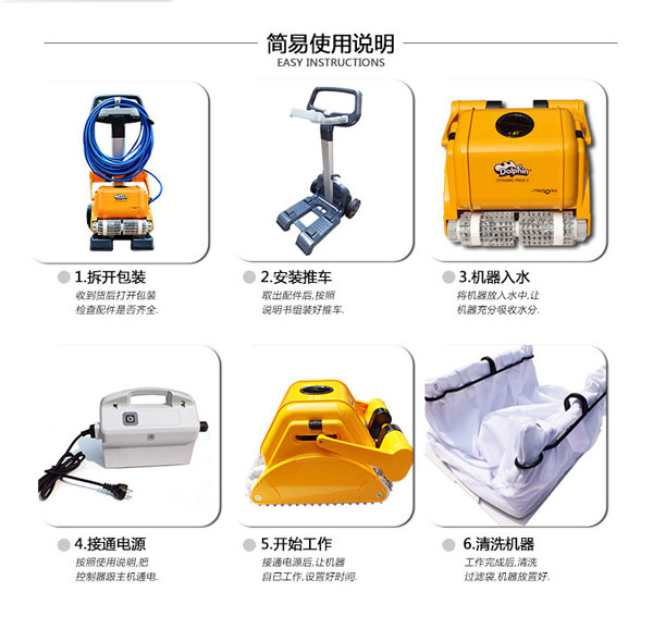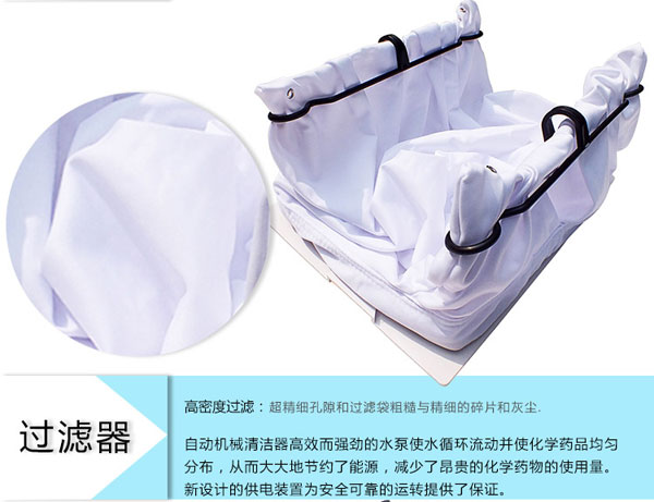 3、同時(shí)過(guò)濾袋指示燈讓我們知道何時(shí)要傾倒袋中的雜物。工作周期短,高級(jí)程序設(shè)計(jì)使人們僅需6小 時(shí)就可以清潔泳池一次。