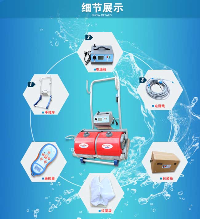 作為合格的水質(zhì)管理員應(yīng)知道泳池水處理中有一項池底清潔處理工作必須用到游泳池吸污機,也叫水下吸污機,水龜?shù)龋饕槍Τ厮械钠ば、頭發(fā)、樹葉、塵埃等臟物進行清潔,使水清澈透明。