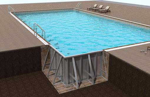 鋼結(jié)構(gòu)拆裝式游泳池是近年來(lái)新興的泳池形式,其特征在于具有底板和側(cè)板,底板為幾何造型的塊狀結(jié)構(gòu)拼裝在一起,接縫處設(shè)密封橡膠墊,側(cè)板采用側(cè)向支撐筋支撐固定。具有組裝快捷、便于移動(dòng)、省錢(qián)省時(shí)、使用安全、節(jié)能節(jié)水、造型美觀、便于安裝等特點(diǎn)。